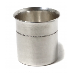 Высота: 6 см, диаметр верха: 6 см. Объём: 100 мл. Вес: 111 граммов серебра 830 пробы.