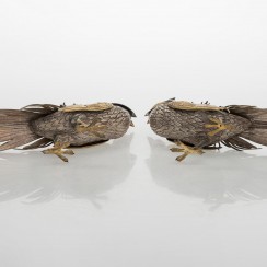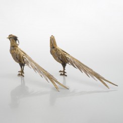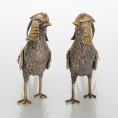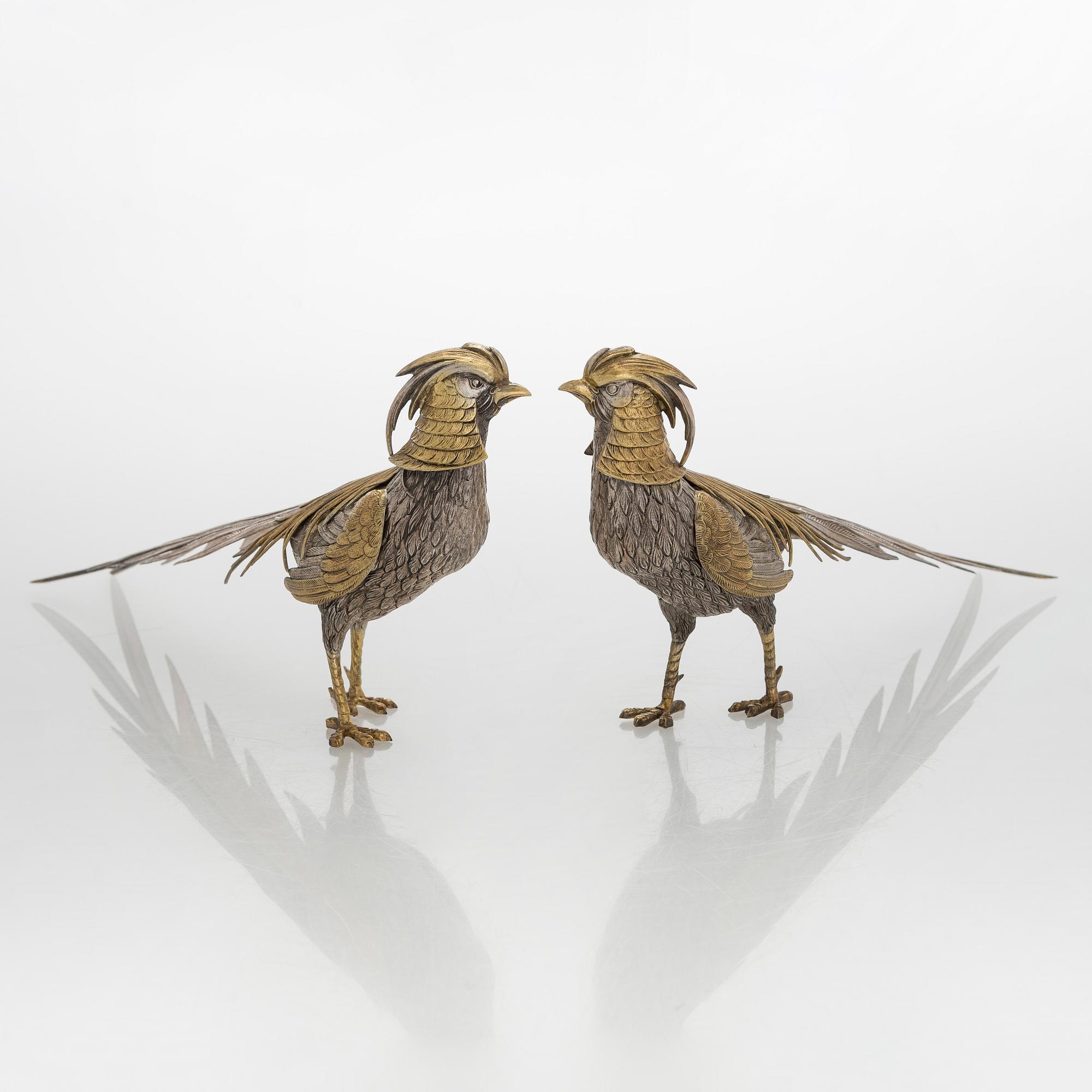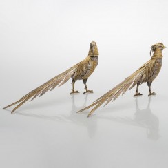 Пара декоративных серебряных фазанов, Испания, общий вес 640 гр, 915 пр, высота 17,2 см, длина 38 см
