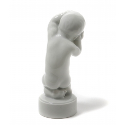 Фарфоровая фигура (статуэтка) "Головная боль". Из серии-аллегории из 4 фигур "Детская боль". Нерасписанный белый фарфор. Белая глазурь.