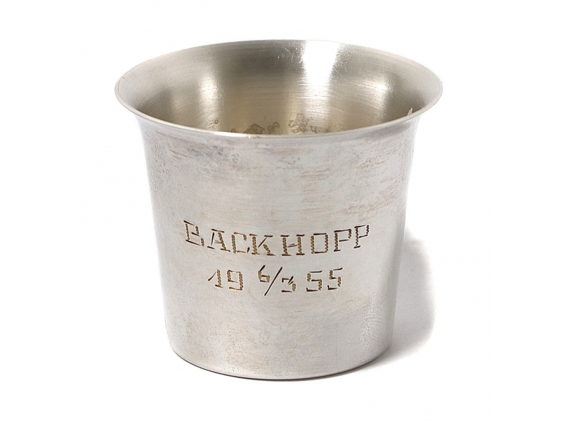 С гравировкой "Приз за участие в соревнованиях по прыжкам с трамплина, 1955 год" ================================= Silver plated vodka cup (shot cup).