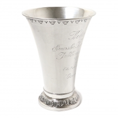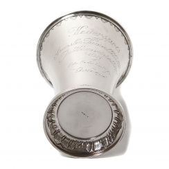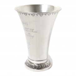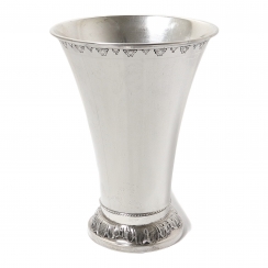 Высота: 23 см, диаметр основания: 11 см, диаметр верха: 17 см. Объём: 1500 мл. Вес: 475 граммов серебра 830 пробы.