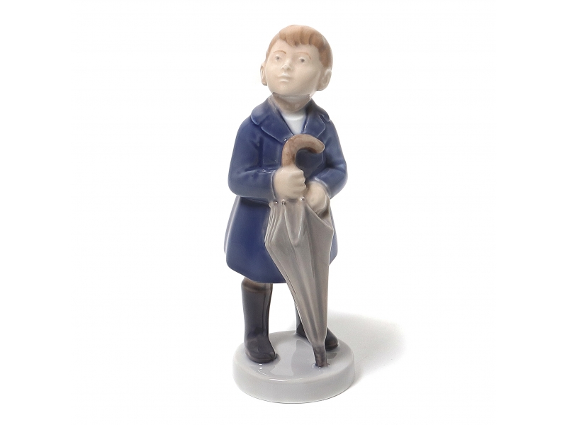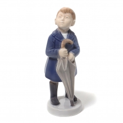 Фарфоровая фигура из серии Месяцы года "Апрель" - Мальчик с зонтиком". Ручная подглазурная роспись.