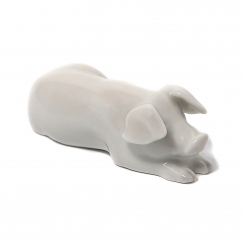 Фарфоровая фигура (статуэтка) "Белая лежащая свинья". Нерасписанный белый фарфор. Белая глазурь.