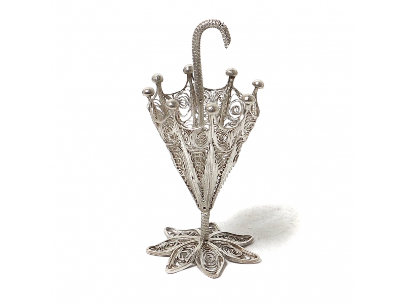 295388 - Подставка для зубочисток в виде зонта, филигрань, 31 гр, высота 9 см, диаметр основания 4 см