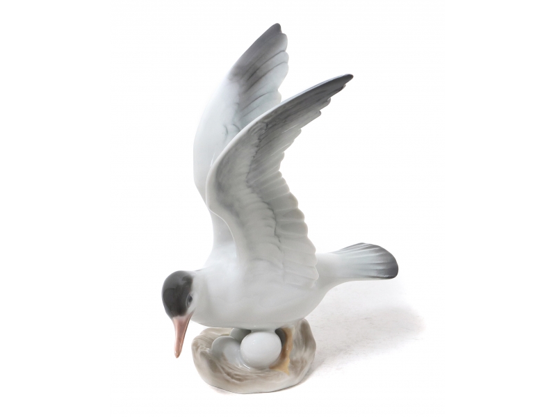 Фарфоровая фигура (статуэтка) "Чайка на гнезде". Ручная подглазурная роспись.
