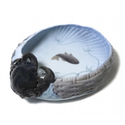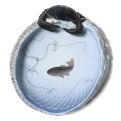 Фарфоровая ваза с фигурой краба и изображением плывущей рыбы. Ручная подглазурная роспись.