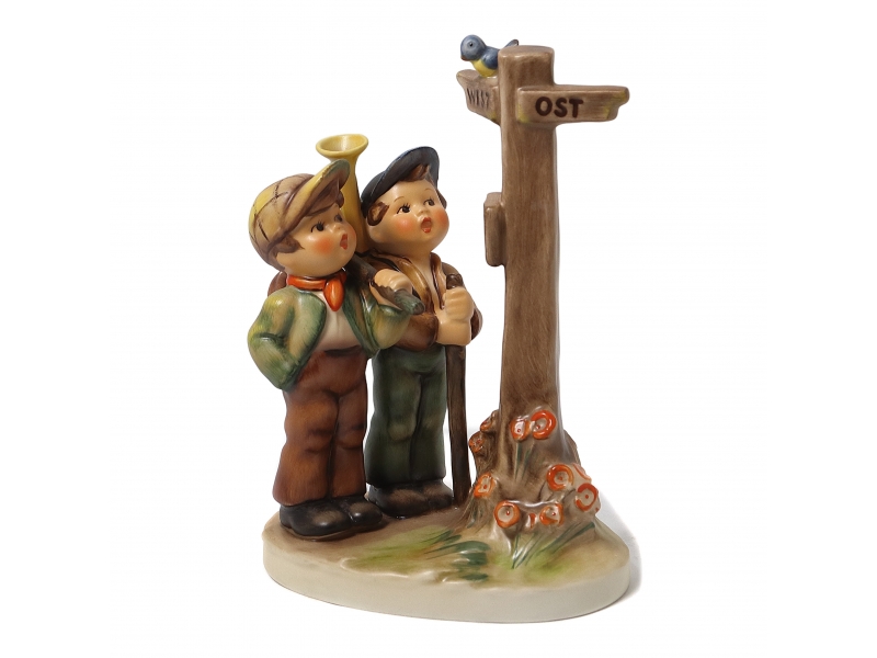 295765 - Два мальчика у путевого столба, максимальная высота 16,5 см, основание 11,5 х 7,5 см,