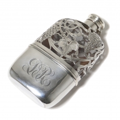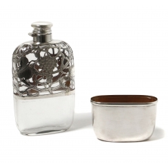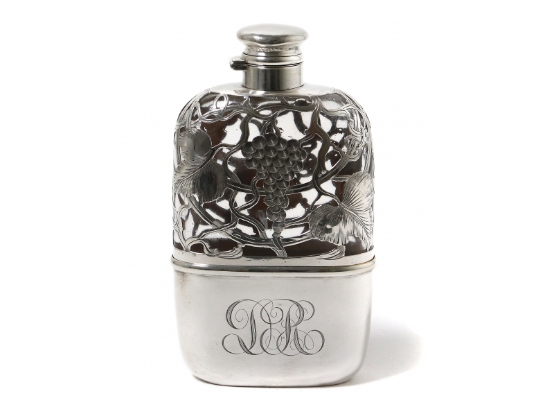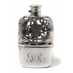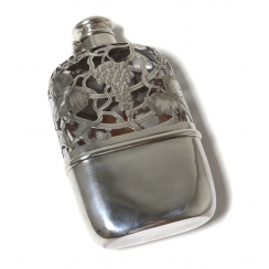 Фляжка со съемным стаканом, декорированная виноградной лозой. Стекло, серебро 925 пробы.