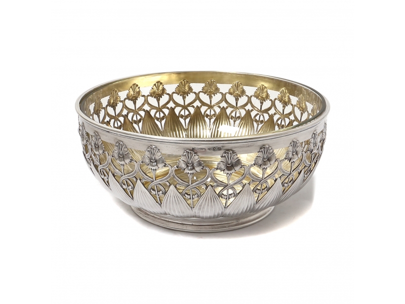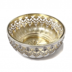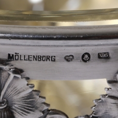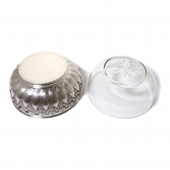 296180 - Серебряная ваза со стеклянной вставкой, вес без стекла 659 гр, 830 пр, диаметр 22,7 см, высота 10,3 см