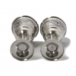 Height: 7.8 cm, diameter the of top: 4.3 cm. Volume: 30 ml. Total weight: 100 grams of silver 875 fineness.