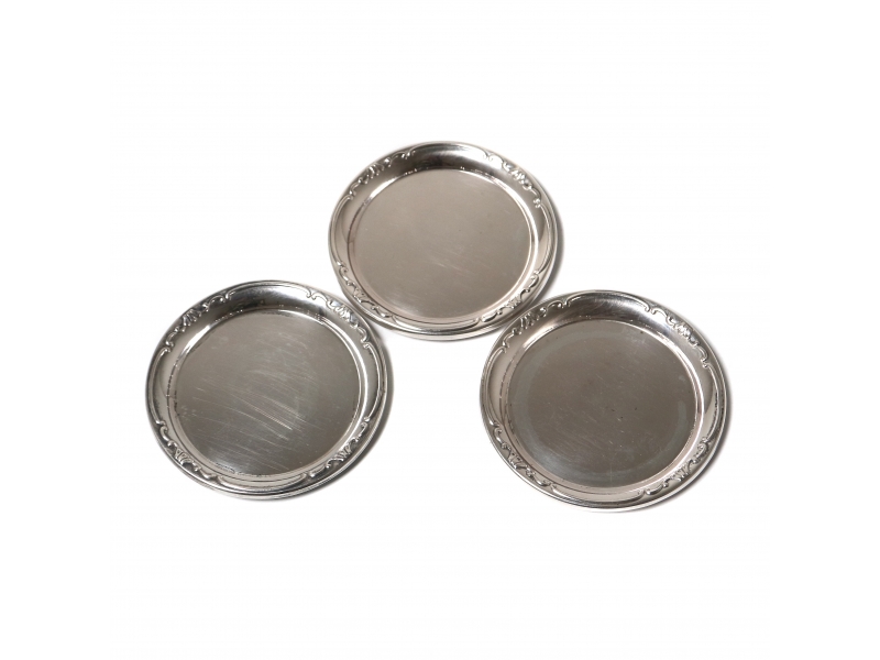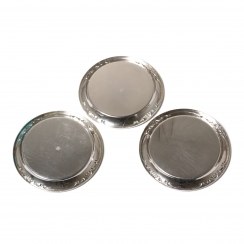 Диаметр: 8 см. Общий вес: 107 граммов серебра 830 пробы. ========================== Barware serving silver coasters, 3 pcs.