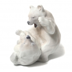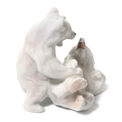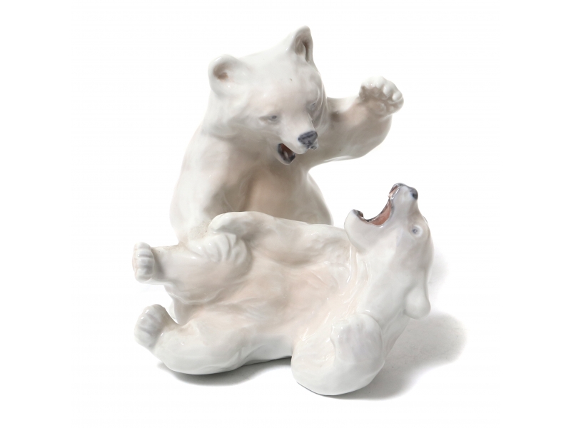 Фарфоровая фигура (статуэтка) "Играющие белые полярные медведи". Ручная подглазурная роспись.