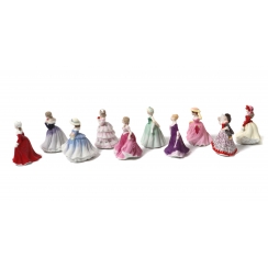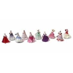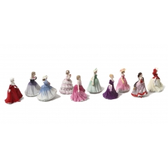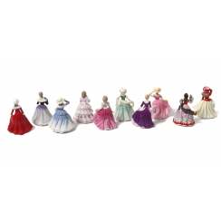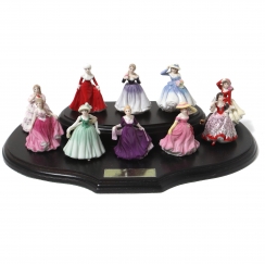 Коллекция из десяти миниатюрных фарфоровых статуэток на подставке. В комплект входят фигурки: Зимняя прогулка, Меган, Мисс Вайолет, Красная роза, Дебора, Элеонора, Элли, Эллен, Кармен, Элис. Все фигурки в оригинальных коробках.