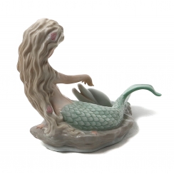 Фарфоровая фигура (статуэтка) "Русалка и дельфин". Ручная подглазурная роспись.