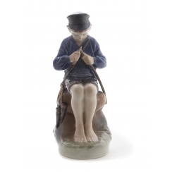 Фарфоровая фигура (статуэтка) "Мальчик, строгающий прутик". Ручная подглазурная роспись.