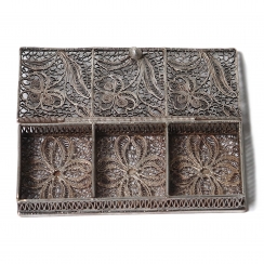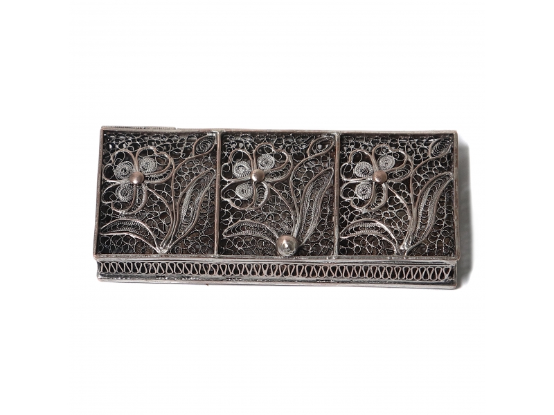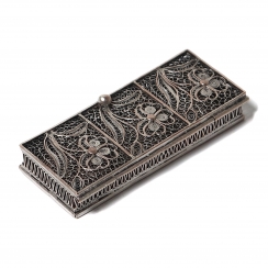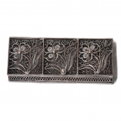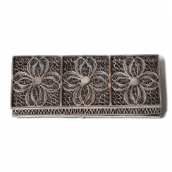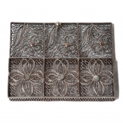 Посеребренная шкатулка (таблетница), выполненная в технике филиграни.