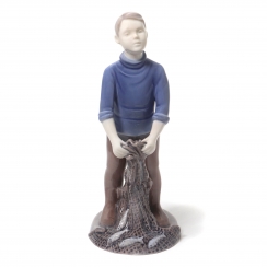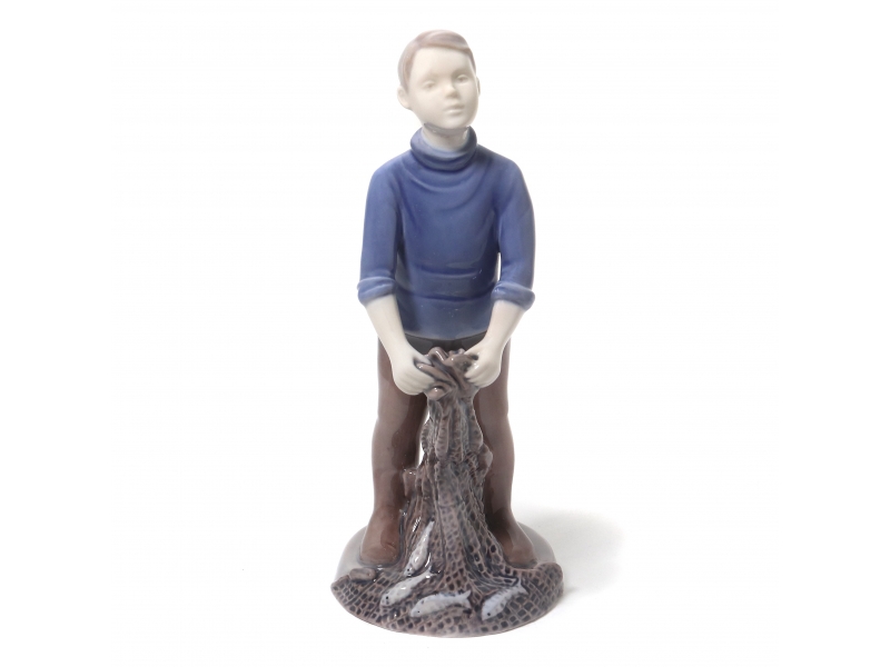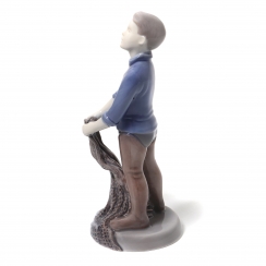 Фарфоровая фигура (статуэтка) "Мальчик с рыбацкой сетью". Ручная подглазурная роспись.