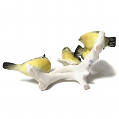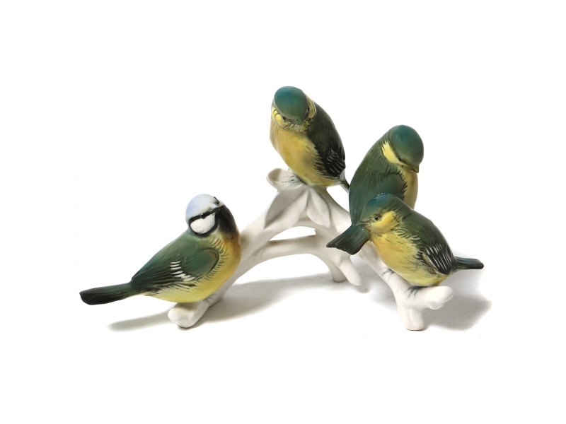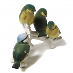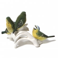 Фарфоровая фигура (статуэтка) "Четыре синицы на ветке". Ручная подглазурная роспись.