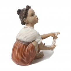 Данная модель встречается в двух видах росписи: девочка в синем платье и коричневом платье. ================================== Porcelain figurine "Girl selling pearls". Hand-painted underglaze.