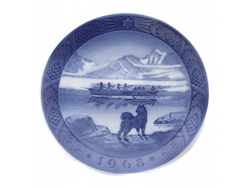 Тарелка первого сорта. Без сколов, повреждений и без реставраций. ================================ Collectible porcelain plate year 1968 "The Last Umiak in Greenland" (Konebdd i grenlandsk farvand) from a series of annual Christmas plates.