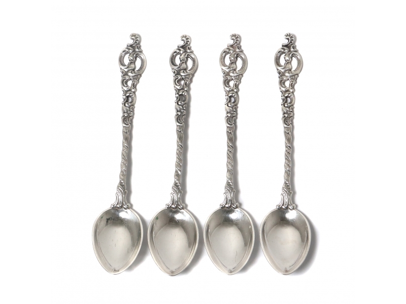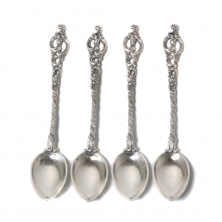 Серебряные кофейные ложки, 4 шт. Дизайн "Двойное рококо" (Dobbel Rokokko).