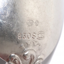 Норвегия, г. Берген, мастерская Magnus Aase (годы работы: 1876-1953). Ввезены в Швецию. Государственное пробирное клеймо Швеции для ввезенных серебряных изделий.