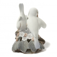 Фарфоровая фигура (статуэтка) "Пара голубков". Ручная подглазурная роспись.