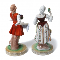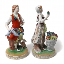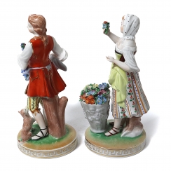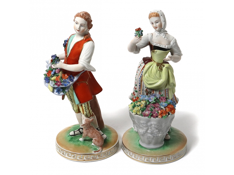 Две фарфоровые фигуры (статуэтки) "Юноша и Девушка - продавцы цветов". Ручная роспись.