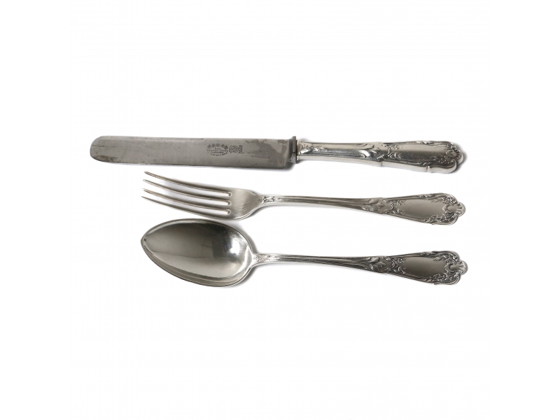 Набор небольших серебряных столовых приборов "Эгоист", 3 предмета.