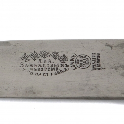 On the blades of the knives there is a stamp "T-in of the production of steel products L. and A. Zavyalov in Vorsmi".