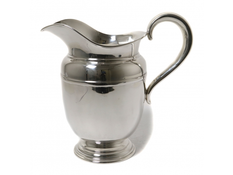 Высота по носик: 22 см, диаметр основания: 10,8 см. Объем: 1650 мл. Вес: 536 граммов серебра 925 пробы. ========================== Sterling silver water pitcher (jug).