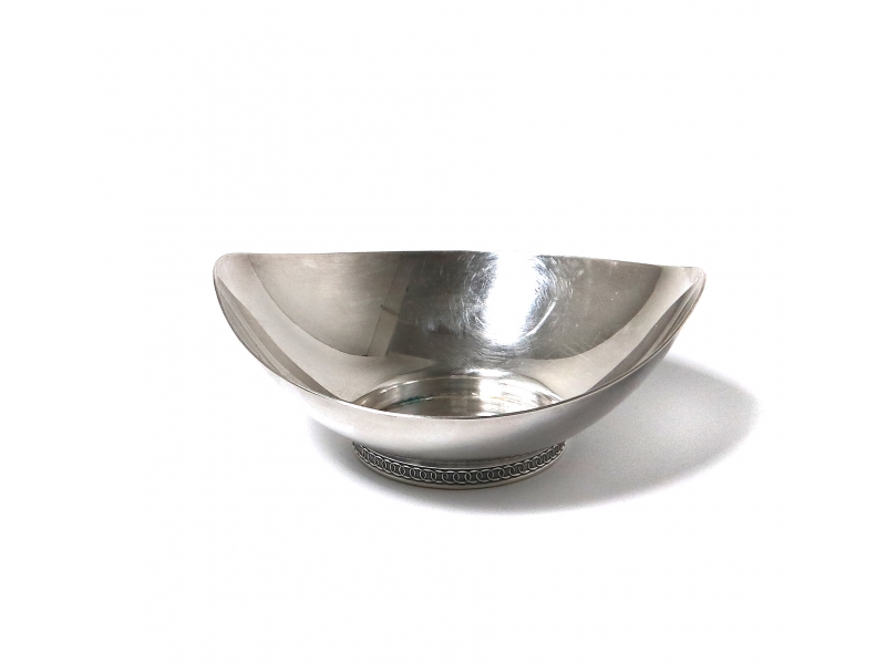 Длина: 9,5 см, ширина: 8,2 см, максимальная высота: 3,8 см. Вес: 66 граммов серебра 830 пробы. ========================== Silver bowl (bon bon nut dish).