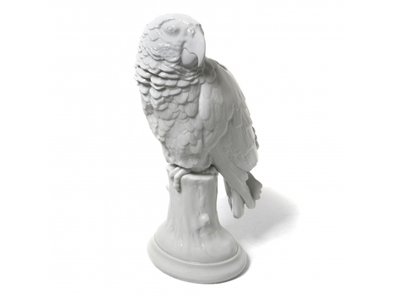 Фарфоровая фигура (статуэтка) "Попугай Ара". Нерасписанный белый фарфор. Белая глазурь.