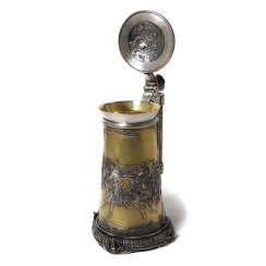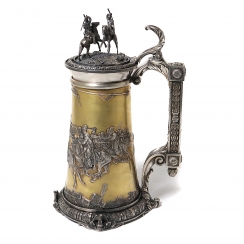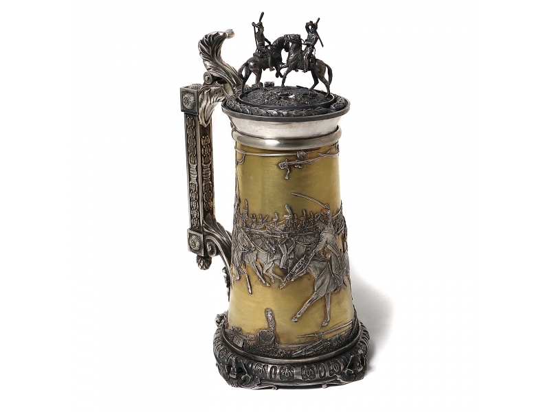 Серебряная кружка с откидной крышкой, декорированная сценами отечественной войны 1812 года "Бородинское сражение".