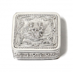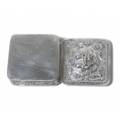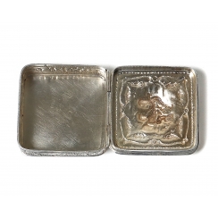 295489 - Небольшая серебряная таблетница. Бельгия Небольшая серебряная коробка (таблетница), декорированная растительным орнаментом и сюжетной миниатюрой.