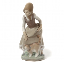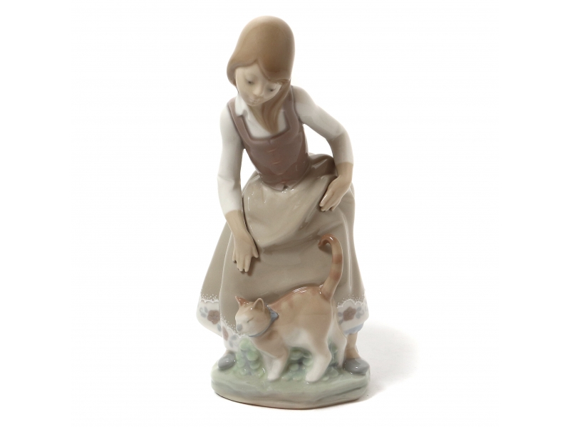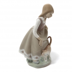 Фарфоровая фигура (статуэтка) "Маленькая девочка с кошкой". Ручная подглазурная роспись.