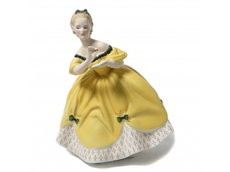 302111 - Девушка в желтом платье с карандашом и блокнотом, высота 20 см, длина 17,5 см, ширина 12 см, RDH_HN2315
