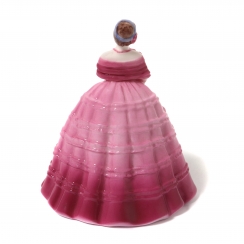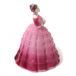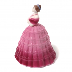 302119 - Девушка в бордовом платье с веером, высота 9 см, основание 7,4 х 6,5 см, Англия, Coalport