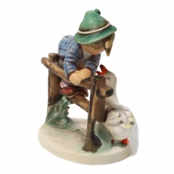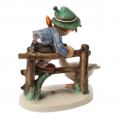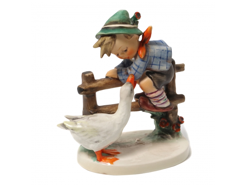 302256 - Мальчик на плетне и гусь, высота 14,2 см, основание 11,2 х 8,2 см, Hum_193/1