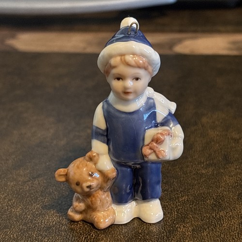 Елочная игрушка Мальчик с плюшевым медвежонком и подарком, высота7,4 см, длина 3,5 см, RCM_