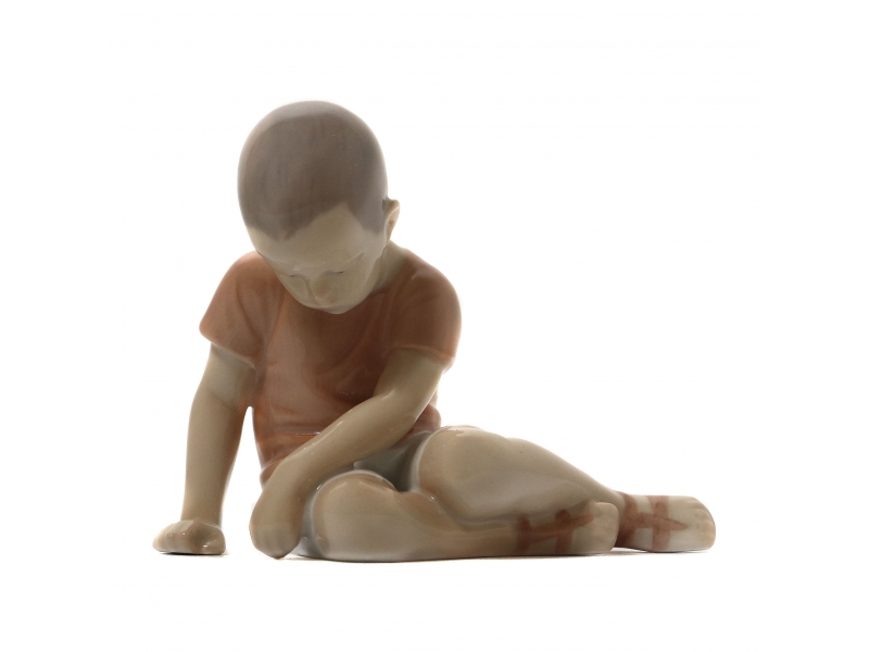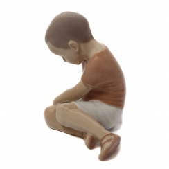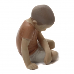 Фарфоровая фигура (статуэтка) "Мальчик, сидящий с опущенной головой". Ручная подглазурная роспись.