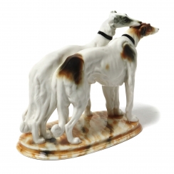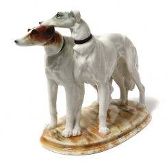 Фарфоровая фигура (статуэтка) "Пара борзых". Ручная подглазурная роспись.