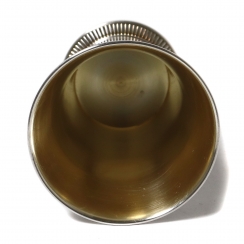 Height: 10.3 cm, diameter of the top: 8 cm, volume: 250 ml. Weight: 110 grams of silver 830 fineness.
