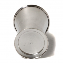 Высота: 10,3 см, диаметр верха: 8 см, объём: 250 мл. Вес: 110 граммов серебра 830 пробы. ======================== Designer silver beaker (cup). Designer Tore Eldh.