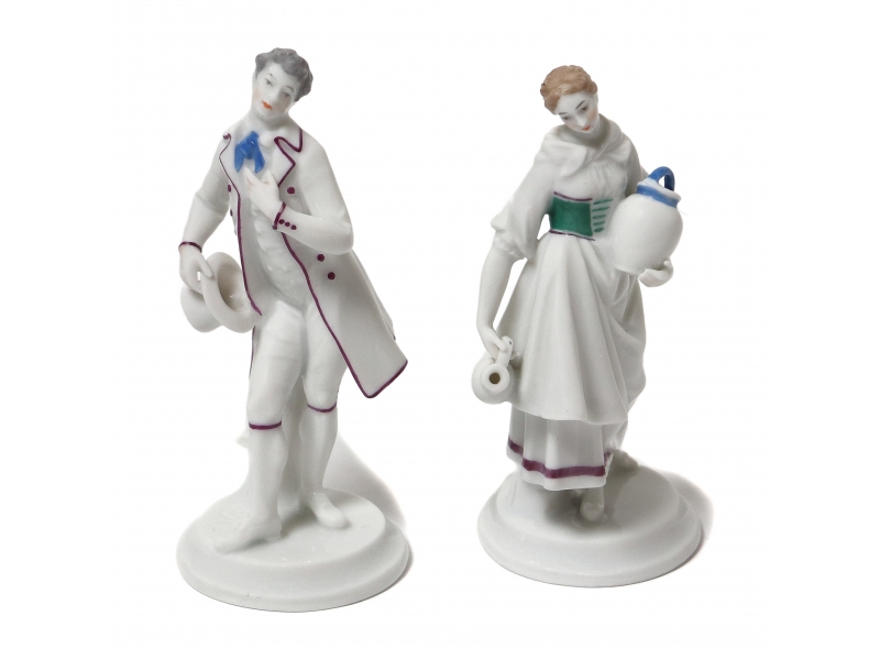 Две миниатюрные фарфоровая фигуры (статуэткм) "Герман" и "Доротея" (Юноша с цилиндром в руке и Девушка с кувшинами). Ручная роспись.