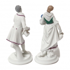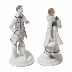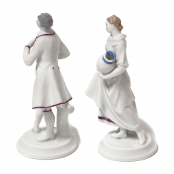 Young man with a top hat, height: 8.7 cm, base diameter: 3.7 cm. Girl with jugs, height: 8.5 cm, base diameter: 3.6 cm.