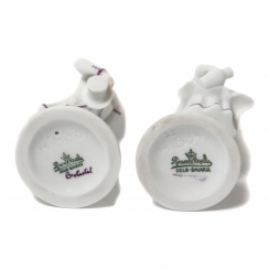 Юноша с цилиндром в руке, высота: 8,7 см, диаметр основания: 3,7 см. Девушка с кувшинами, высота: 8,5 см, диаметр основания: 3,6 см.