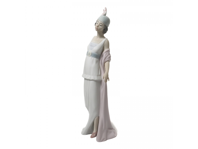 Фарфоровая фигура (статуэтка) "Элегантная женщина в шляпке" (Девушка времен ар деко). Ручная подглазурная роспись.
