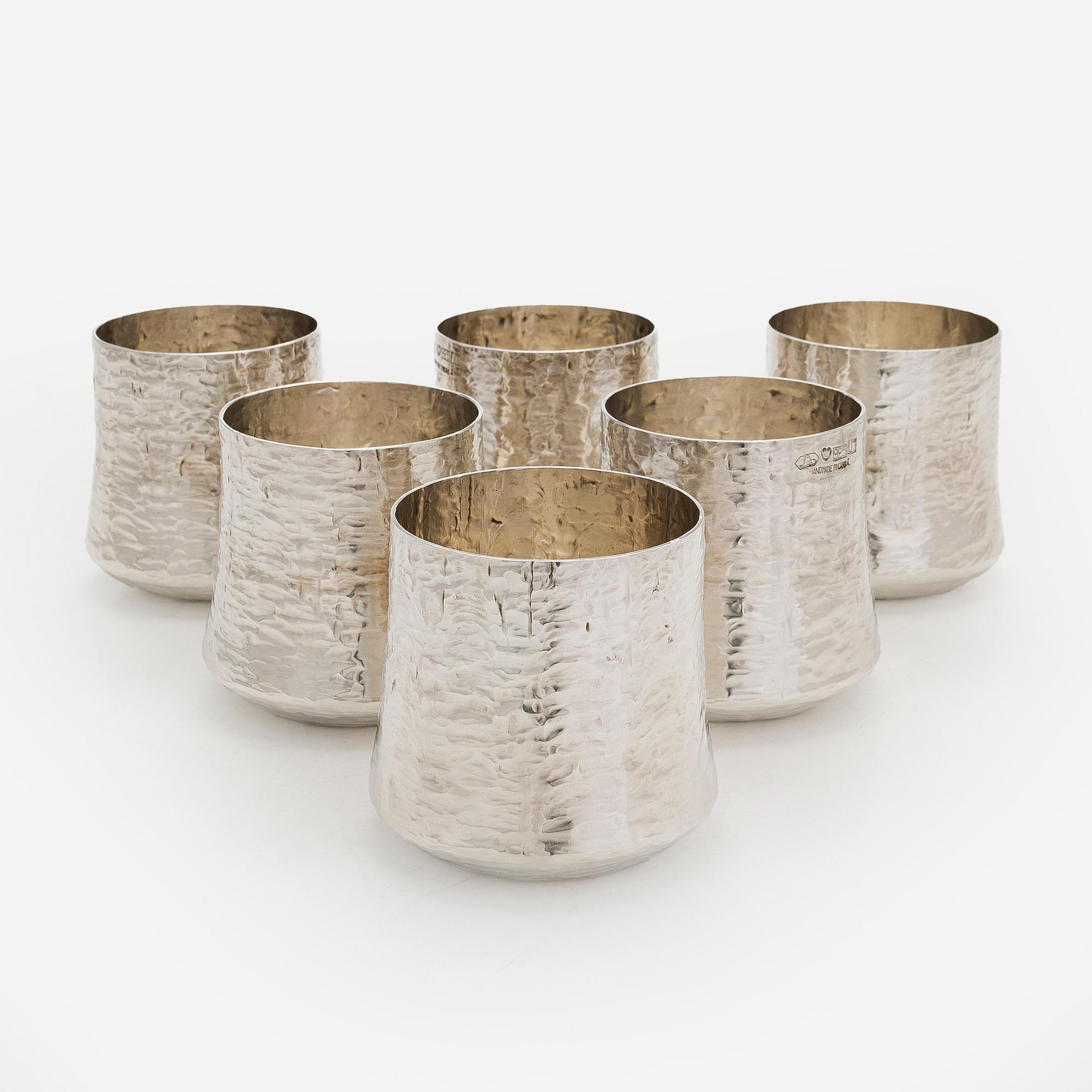 Стаканы, 6 шт, Tapio Wirkkala, Финляндия, 1156 гр, 925 пр, высота 7,? см, диаметр верха 8,5 см