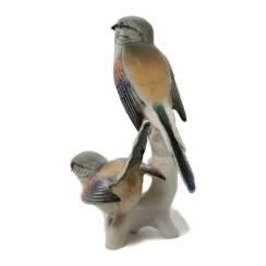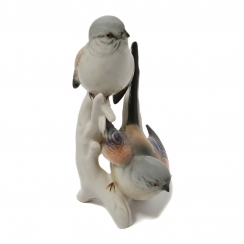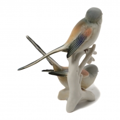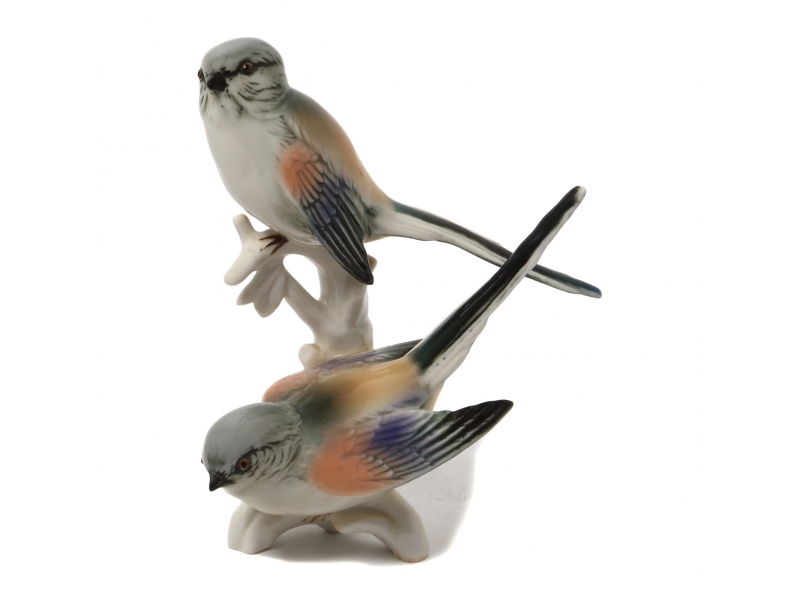 Фарфоровая фигура (статуэтка) "Две длиннохвостых синицы". Ручная подглазурная роспись.